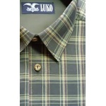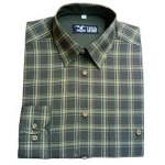 Pánska košeľa s dlhým rukávom zo 100% bavlny, strih REGULAR. Košeľa má zelené káro a gombíky z imitácie paroží (plast, stálofarebné, vysoko odolné).